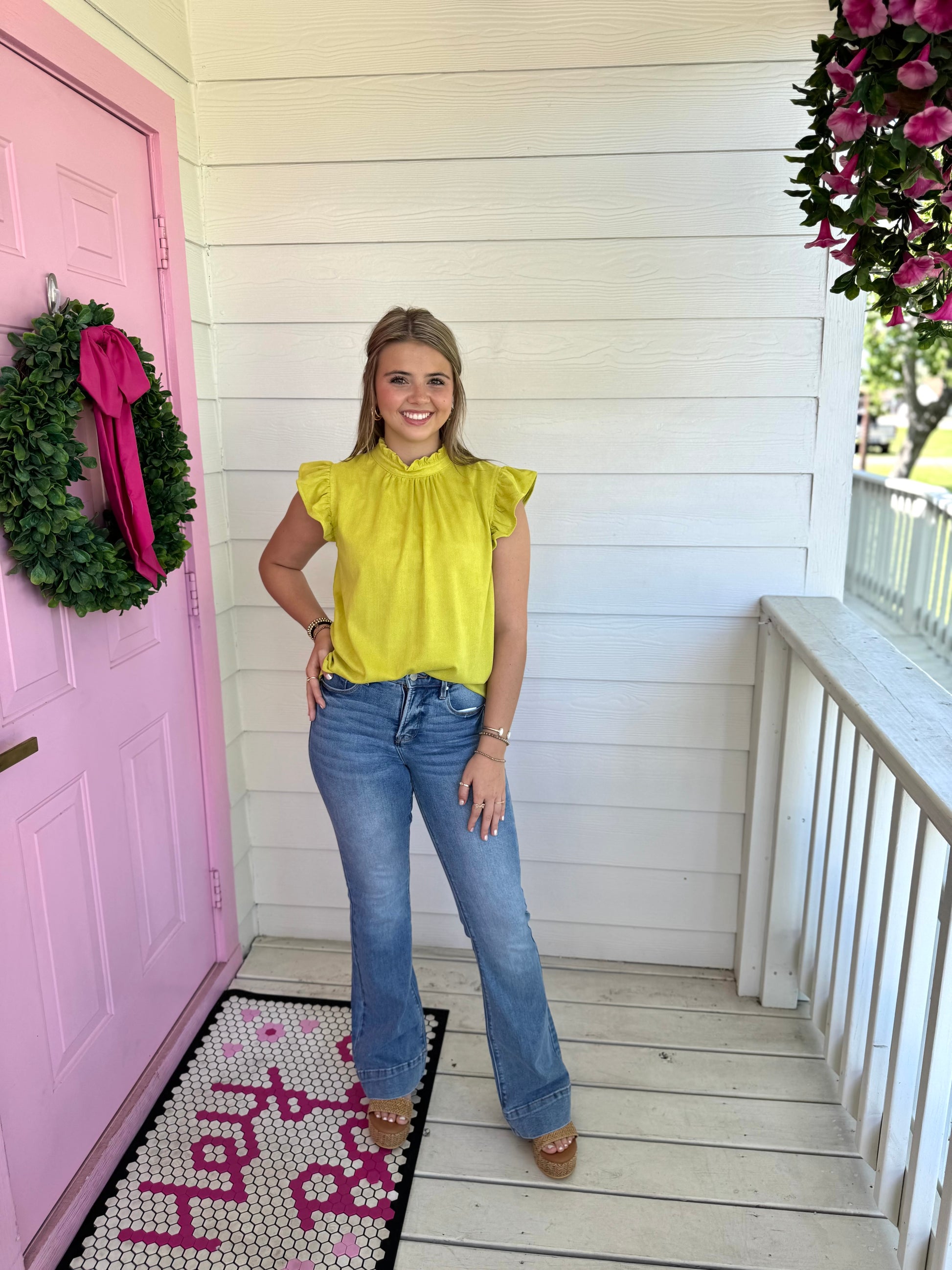 Chartreuse Ruffle Sleeve Top