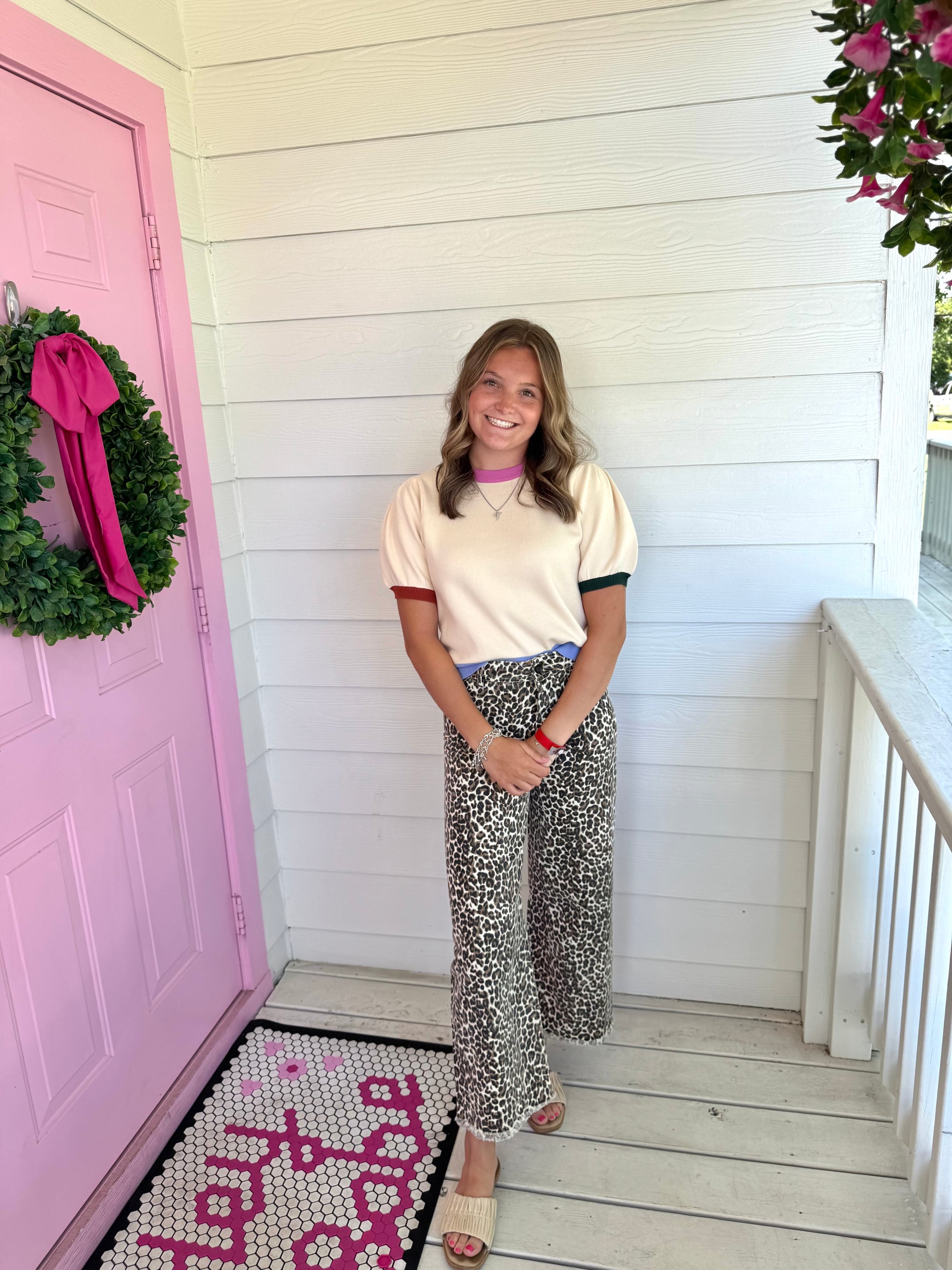 Color Block Trim Sweater Top
