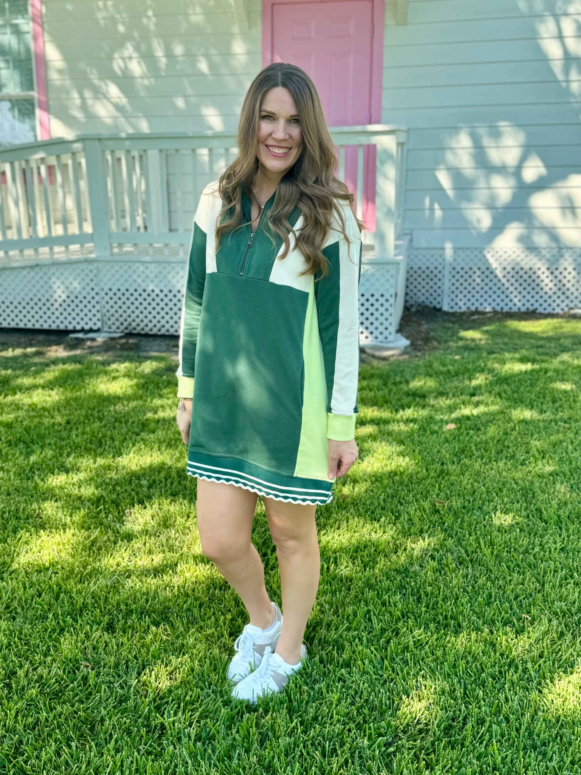 Green Scallop Trim Sweatshirt Dress