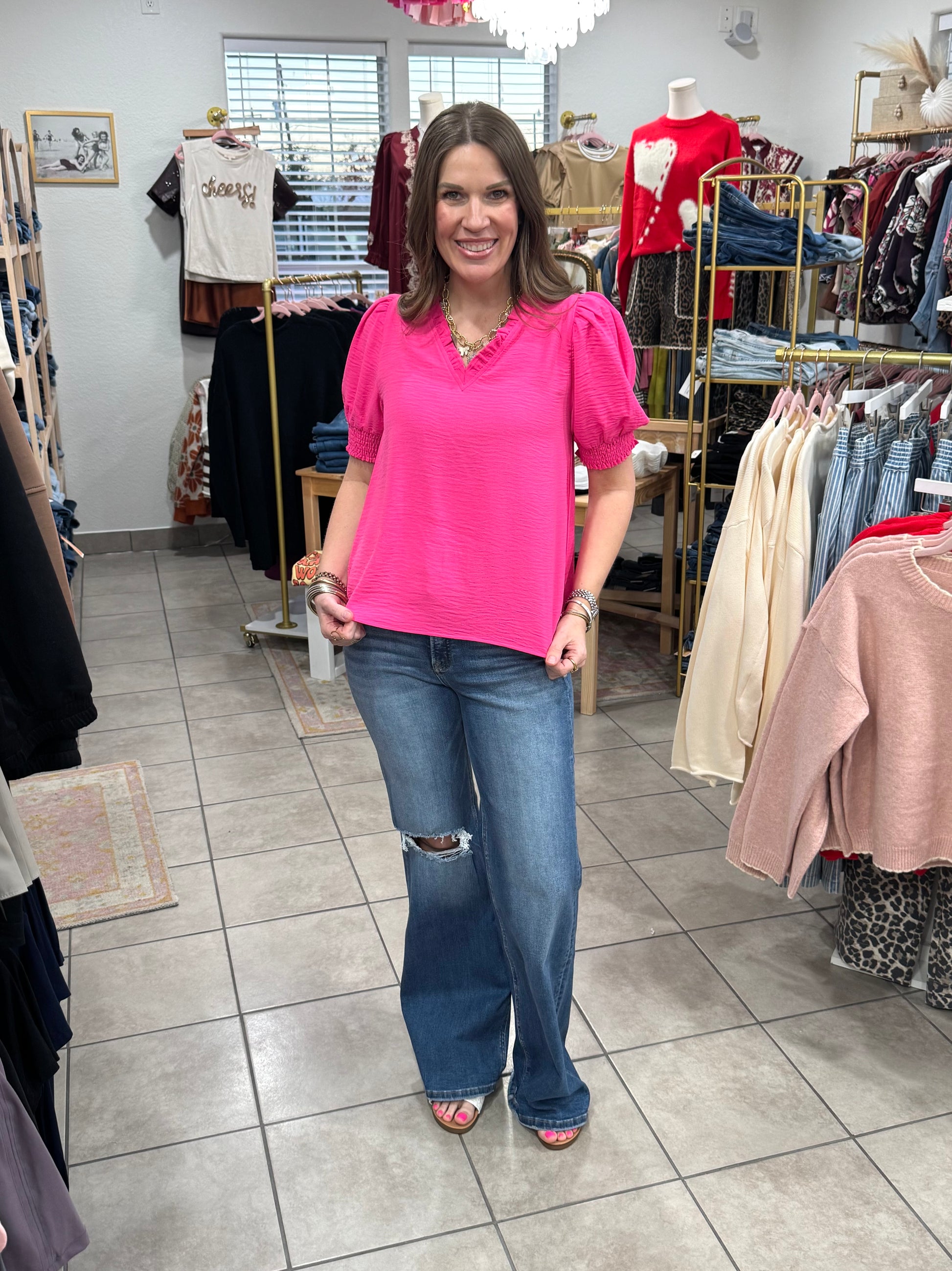 Hot Pink Ruffle V-Neck Top