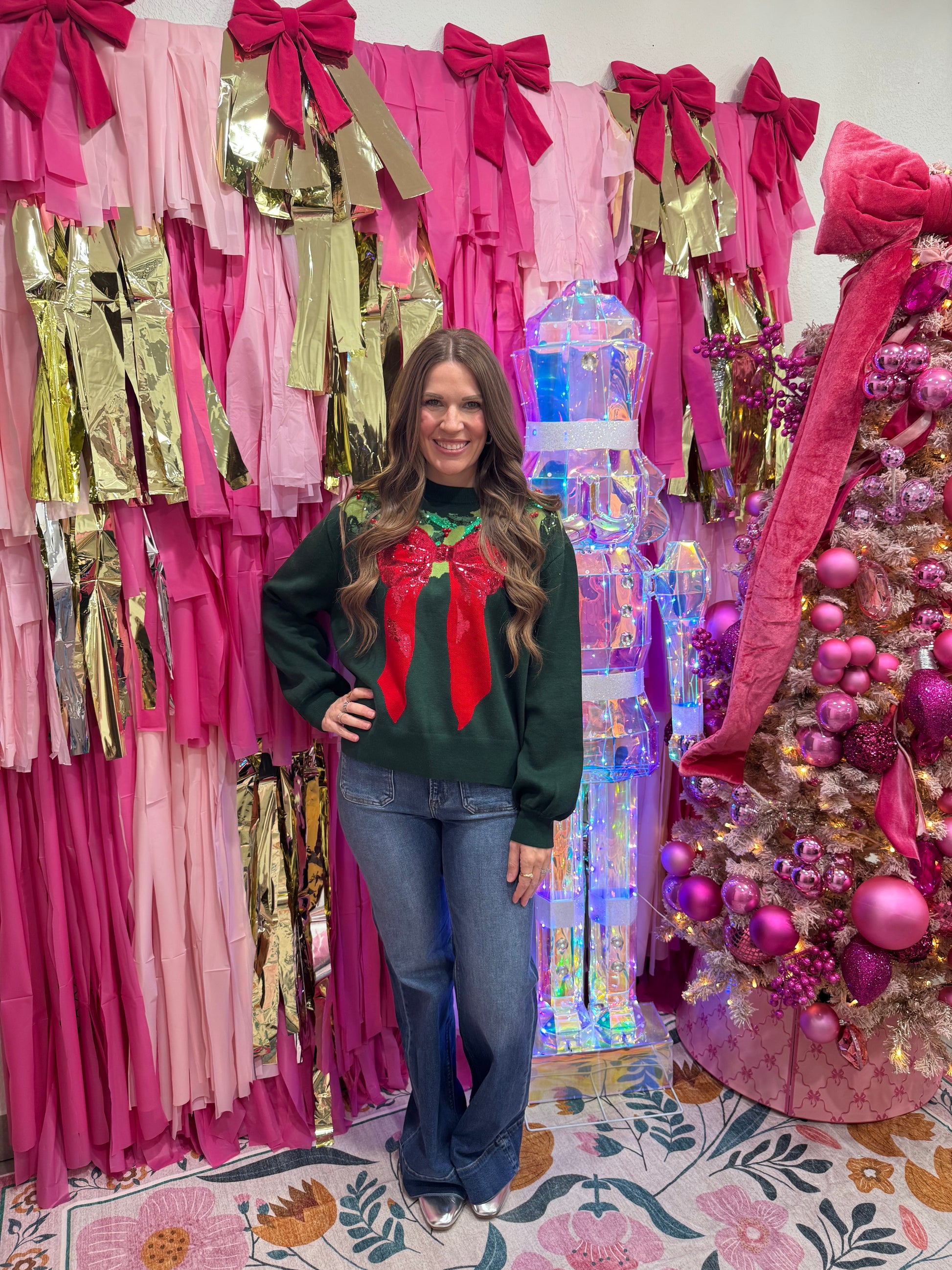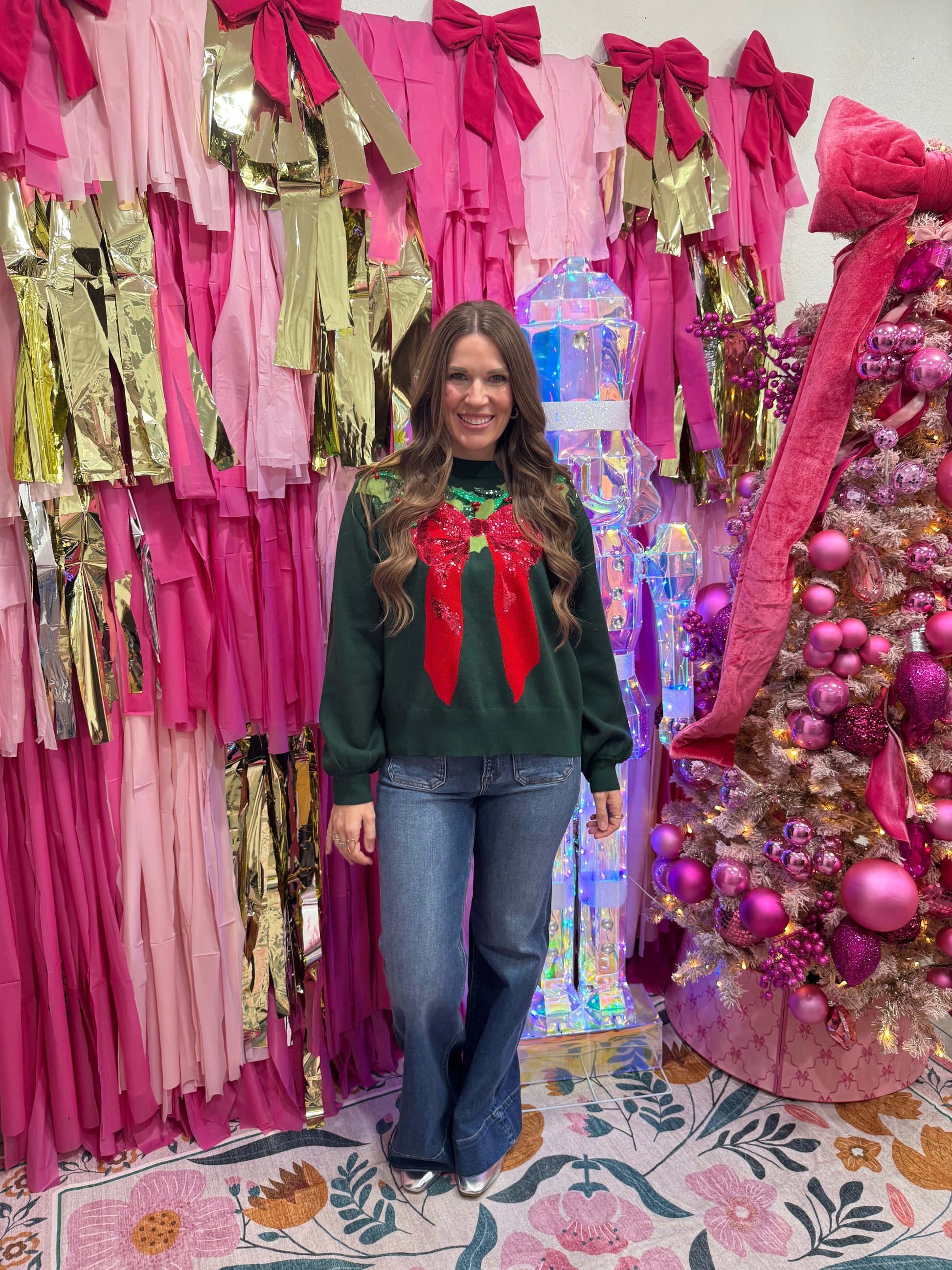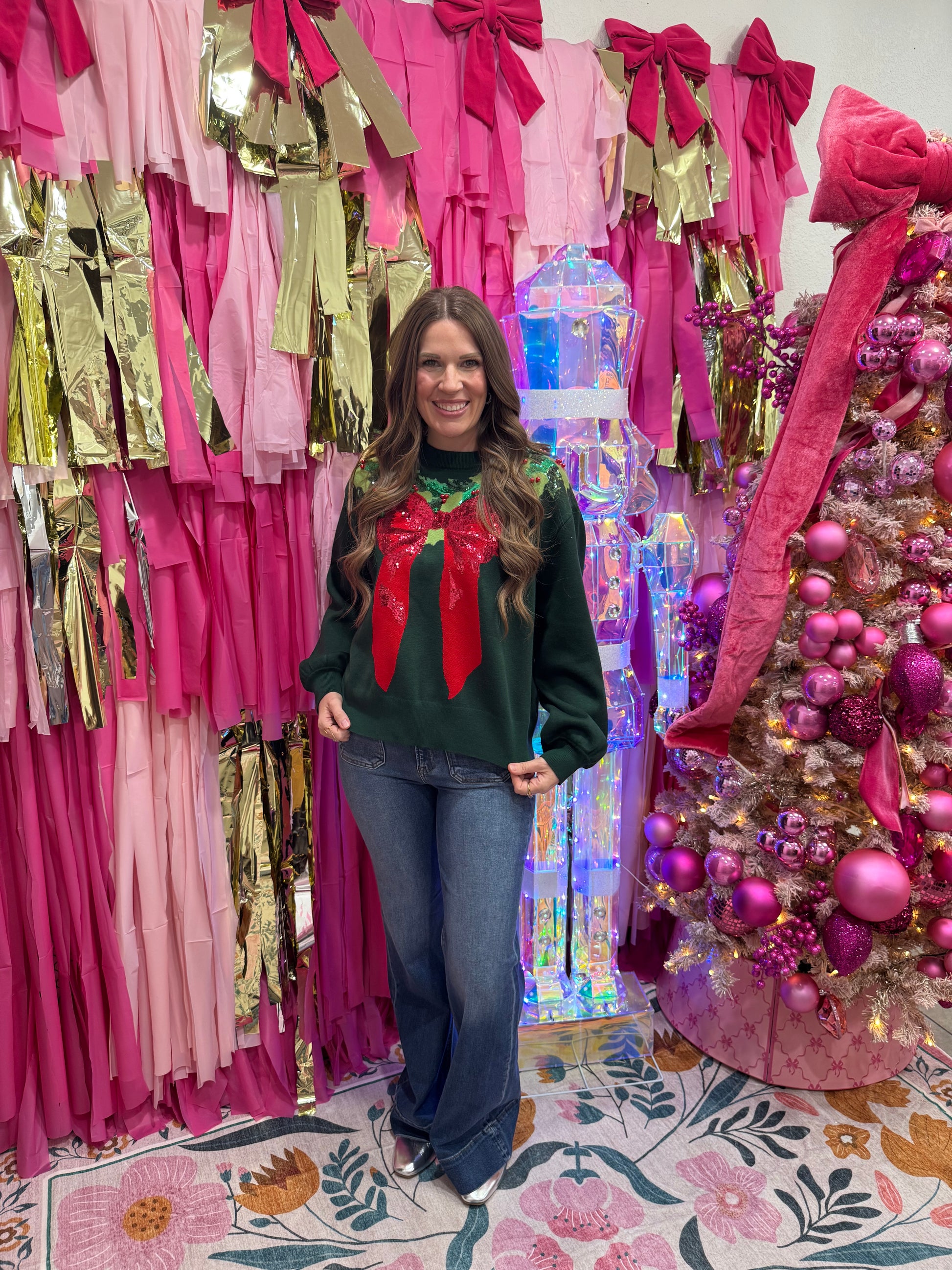 Queen Of Sparkles Dark Green & Red Wreath Sweater