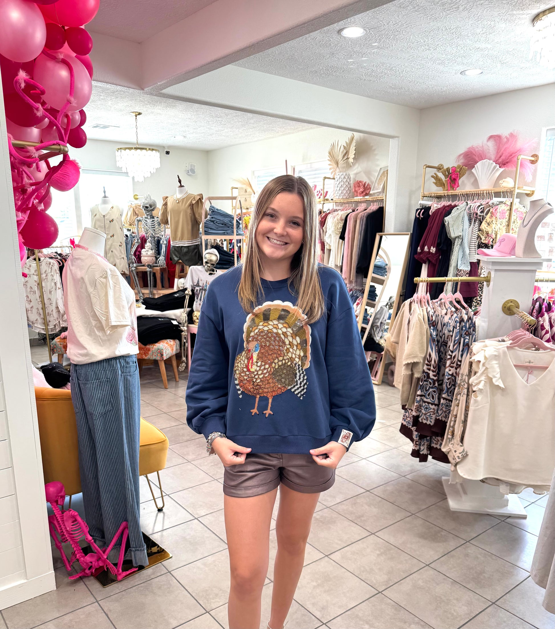 Queen Of Sparkles Navy Big Turkey Sweatshirt